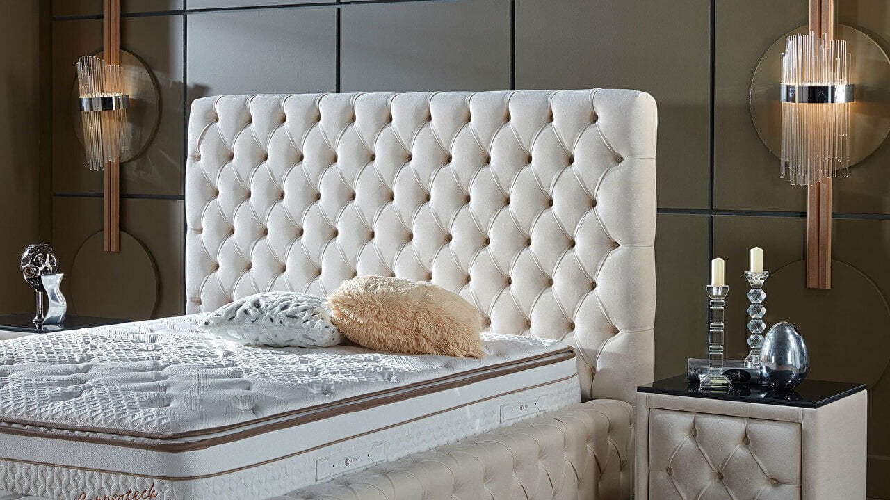 - Lit Coffre Platinum 200X200 – crème L 234cm H 36cm P 234cm – Tête de lit – L 234cm H 137cm P 16cm
